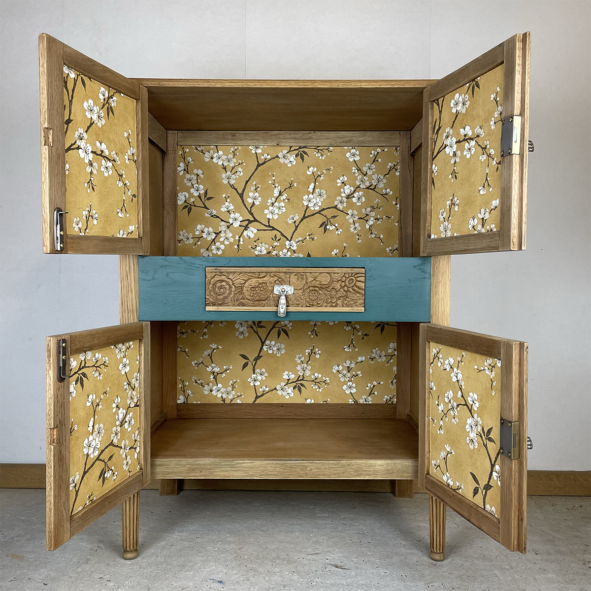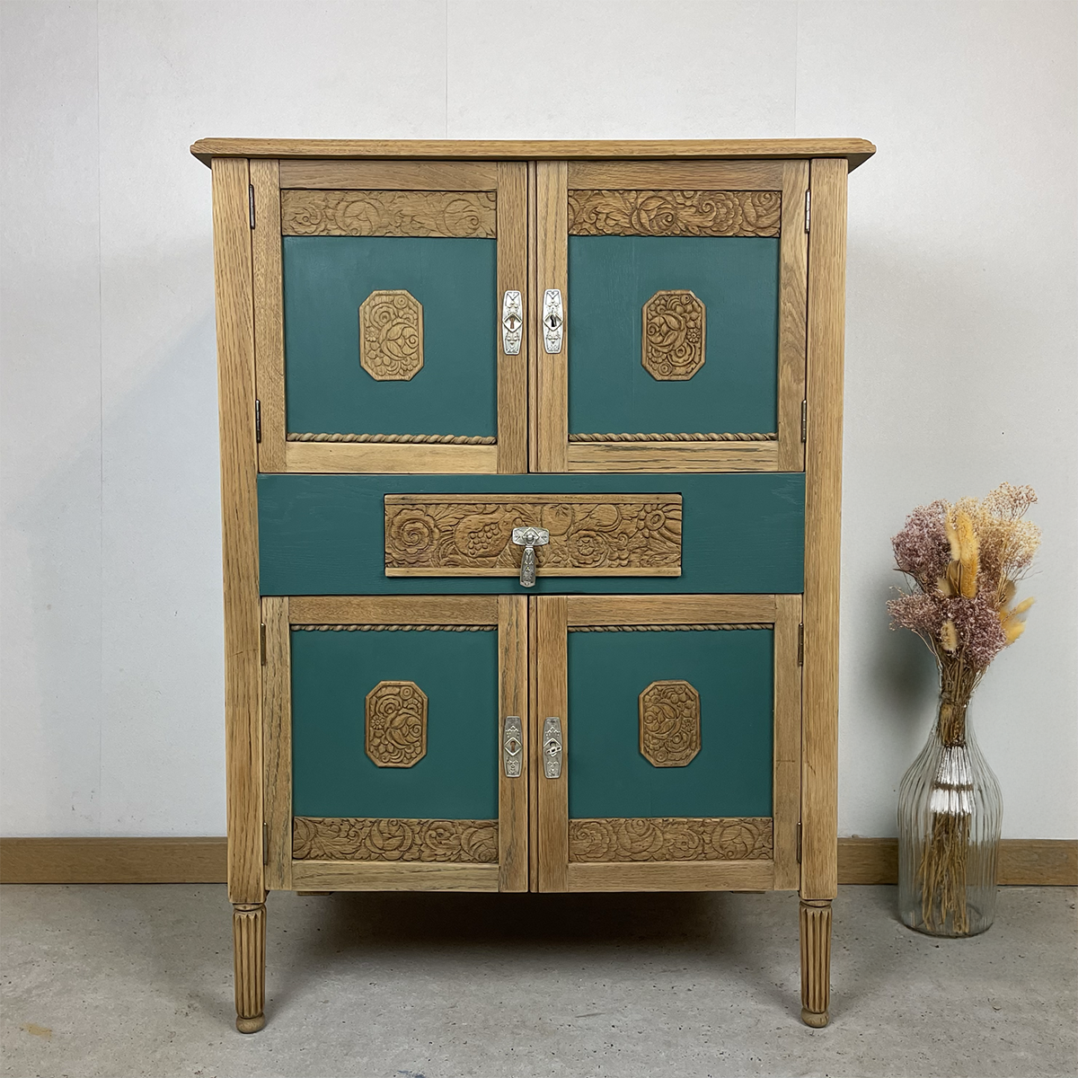 Ce meuble radio de type Art Déco a été entièrement transformé pour devenir une lingère pratique, tout en conservant son charme et son style unique.