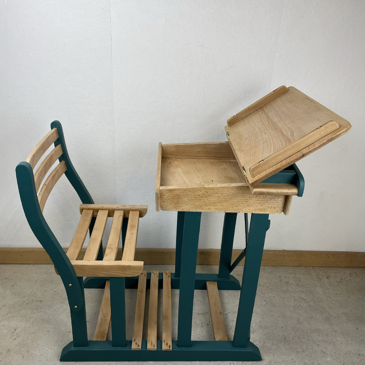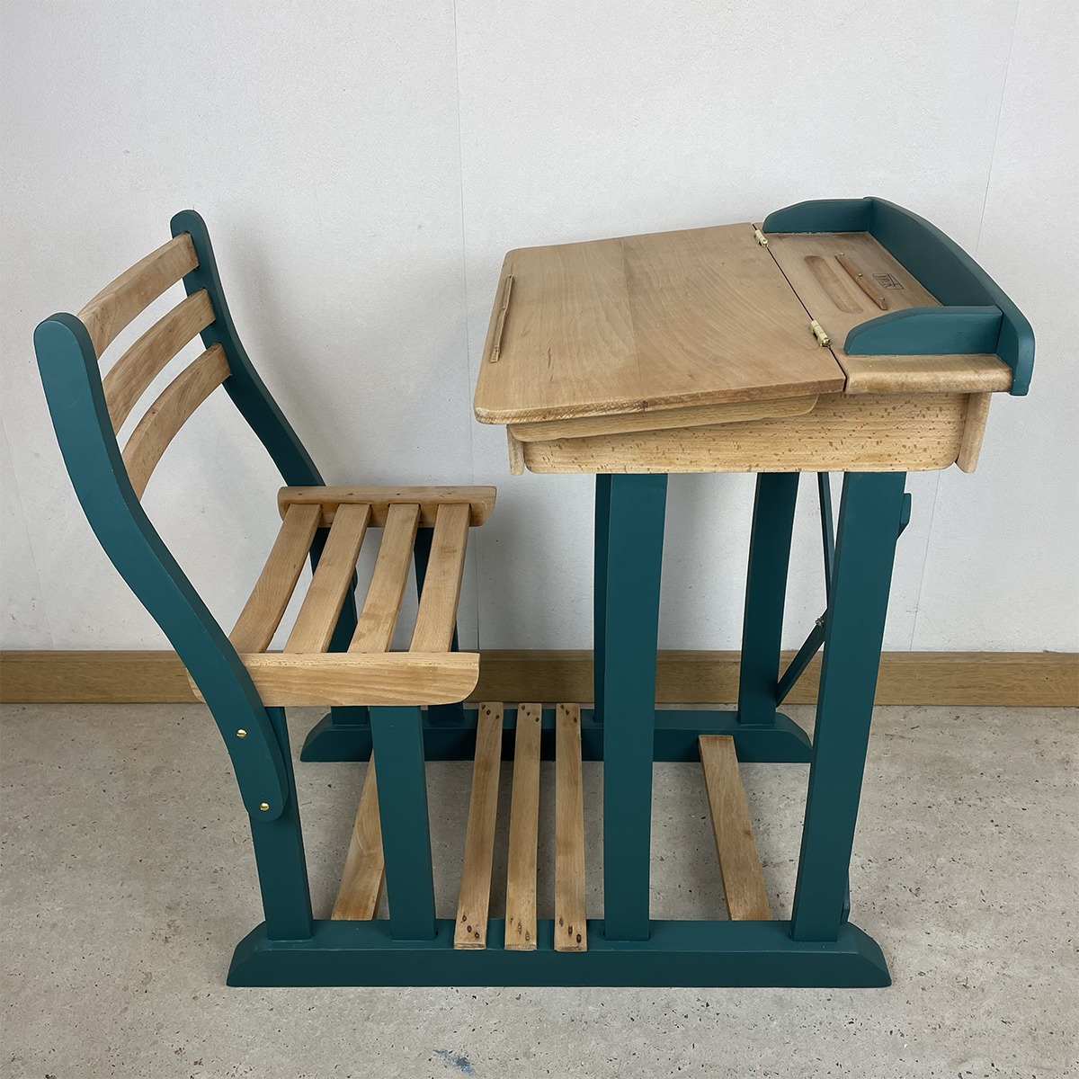 Ce petit banc d’écolier a été entièrement rénové pour retrouver charme et solidité. Chaque étape a été réalisée avec soin pour lui redonner vie tout en conservant son caractère unique.
