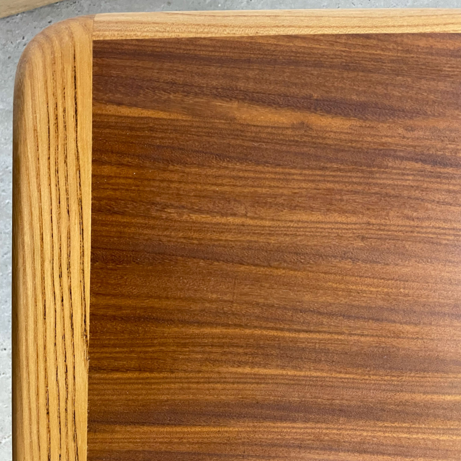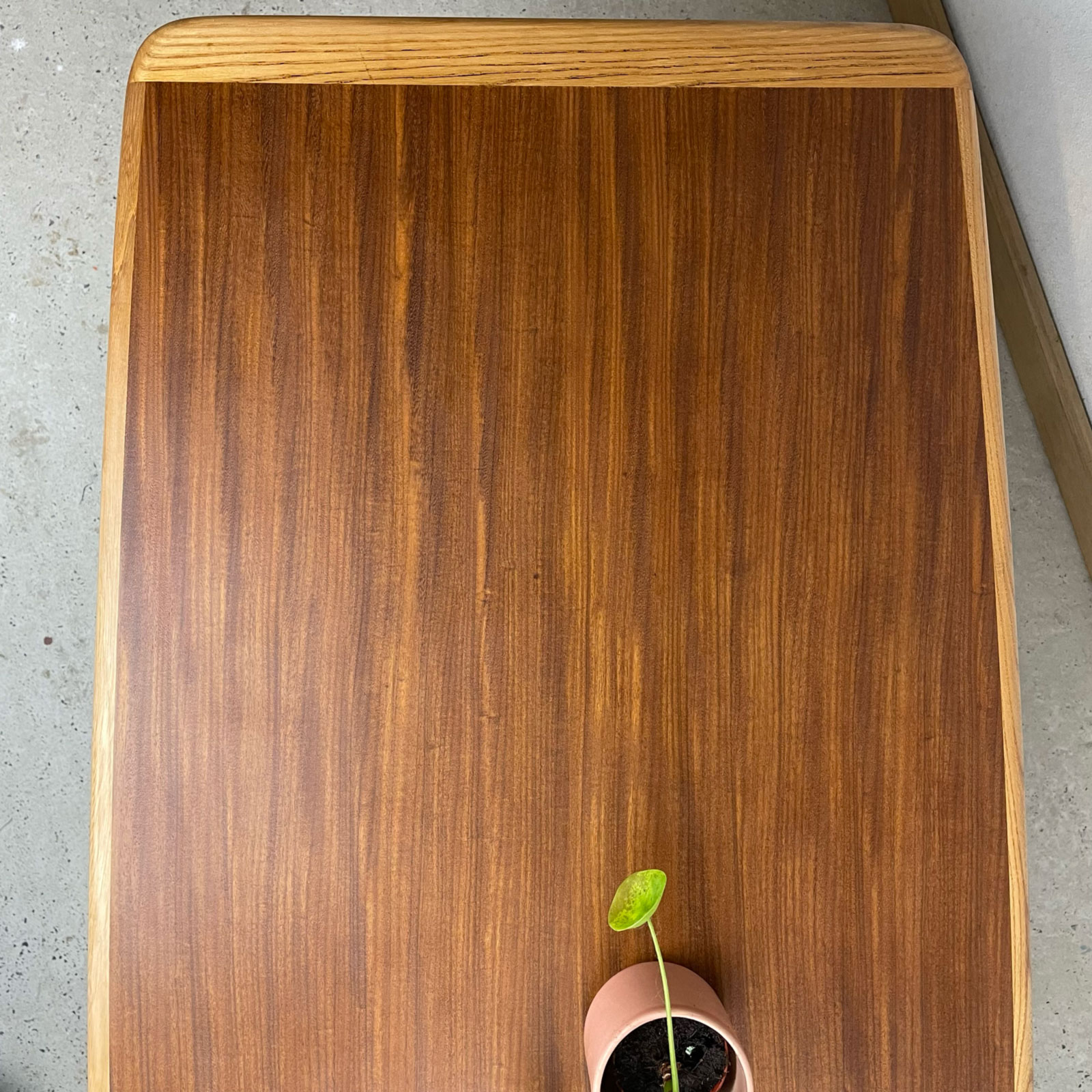 Application de 3 couches d’huile-cire sur le plateau, choisie pour faire ressortir les veines du bois