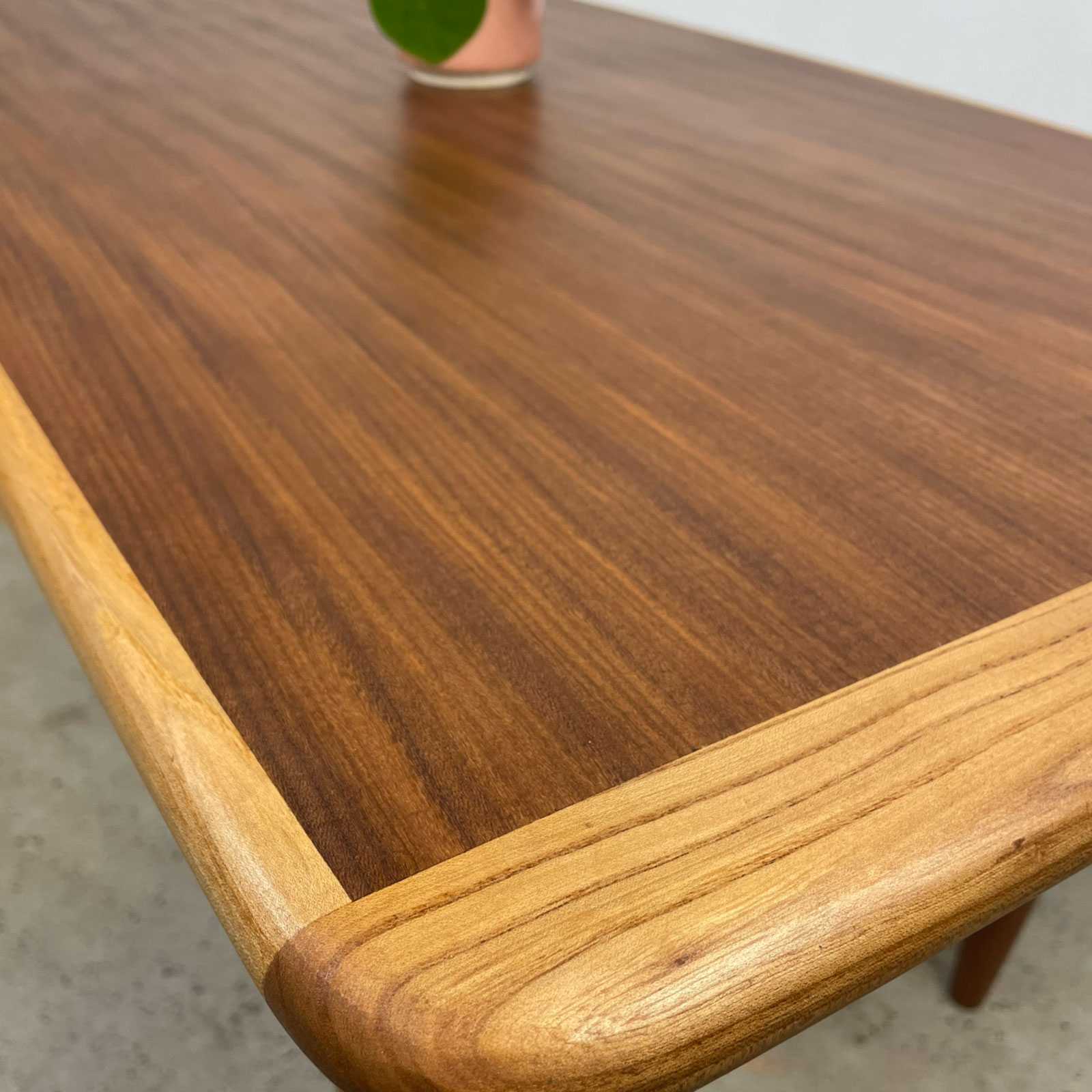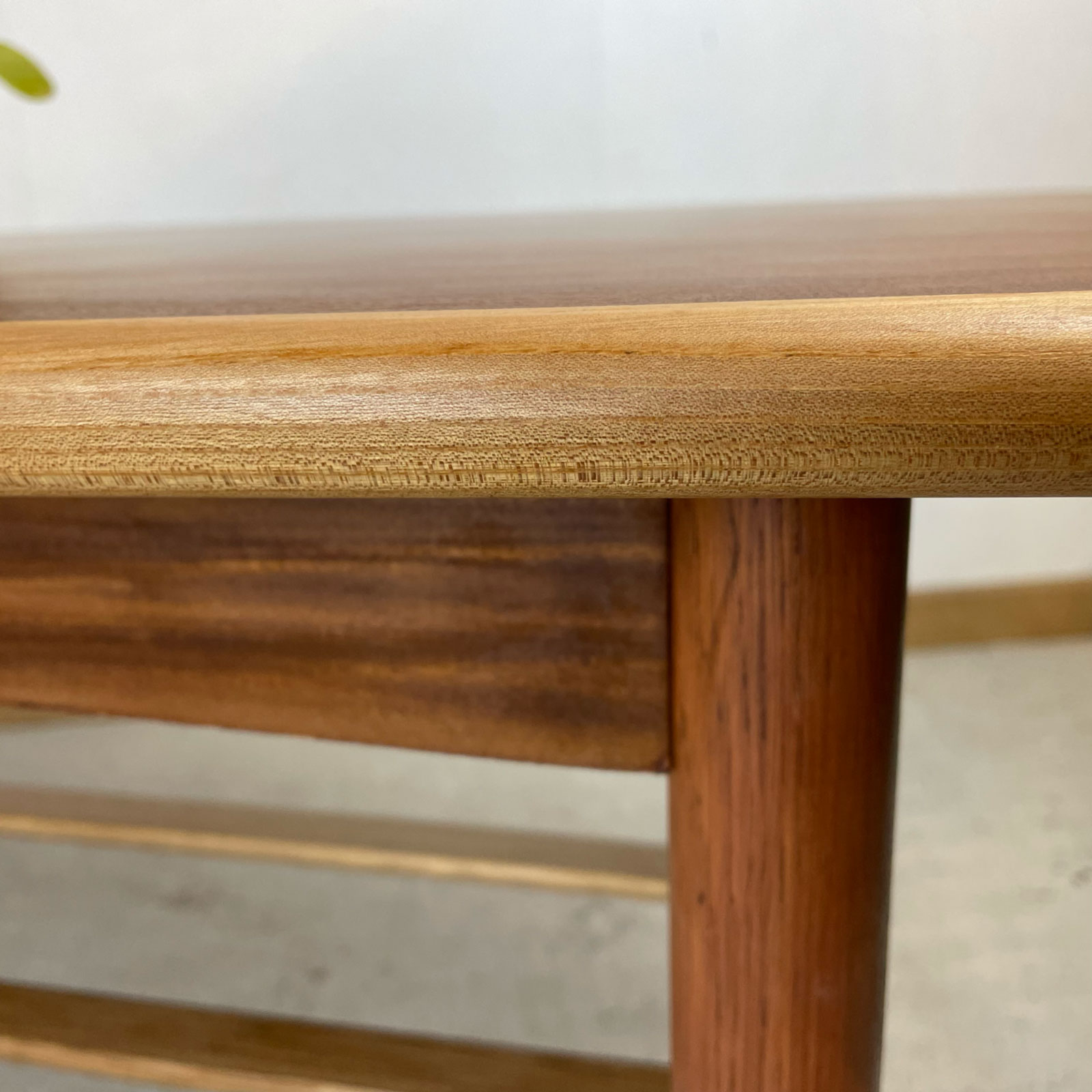 Je tombe rarement sur des tables basses de type scandinave, et j’ai eu un vrai coup de cœur pour les lignes de celle-ci. Les pieds avaient souffert de l’humidité, ce qui a nécessité pas mal travail de restauration afin de redonner tout son éclat au bois.