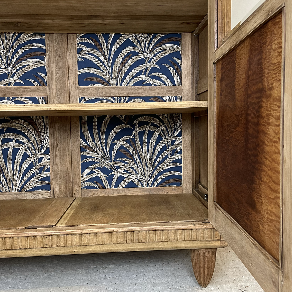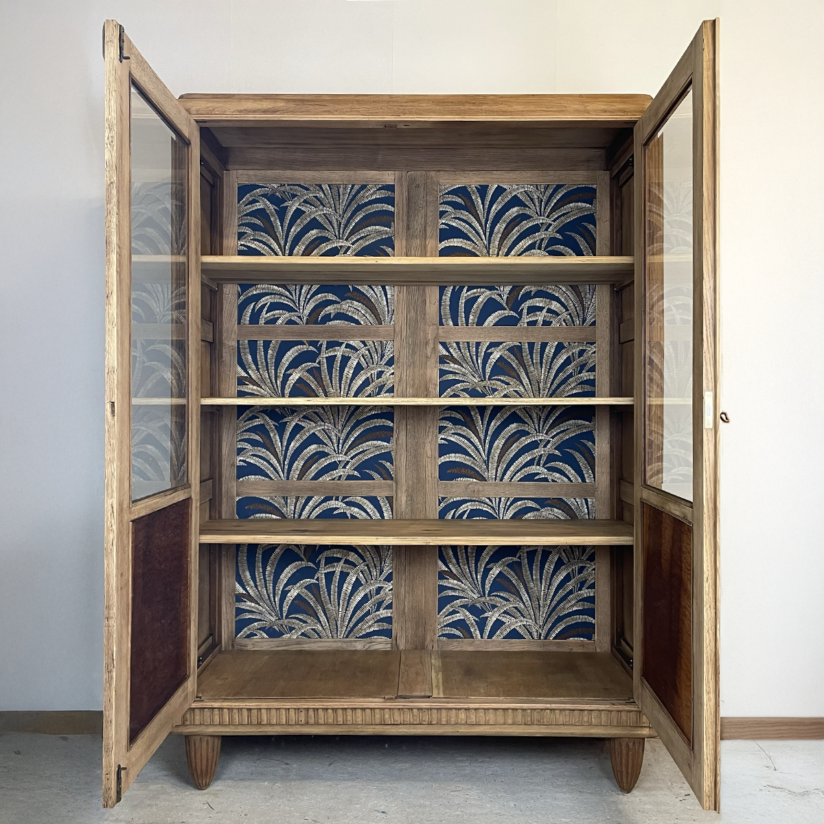 Pose d’un papier peint sur le fond du meuble.